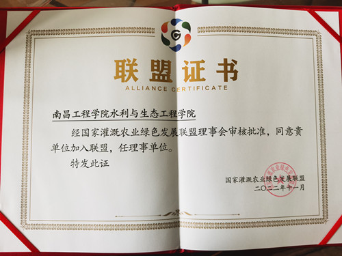 近日,经国家灌溉农业绿色发展联盟理事会审核批准,我校水利与生态工程学院加入联盟,并任理事单位。